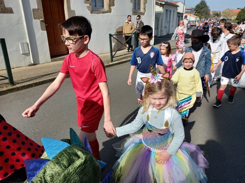 Des grands de la classe d’Evelyne sont venus leur donner la main et nous avons défilé dans les rues de La Bruffière, sous un beau soleil.
