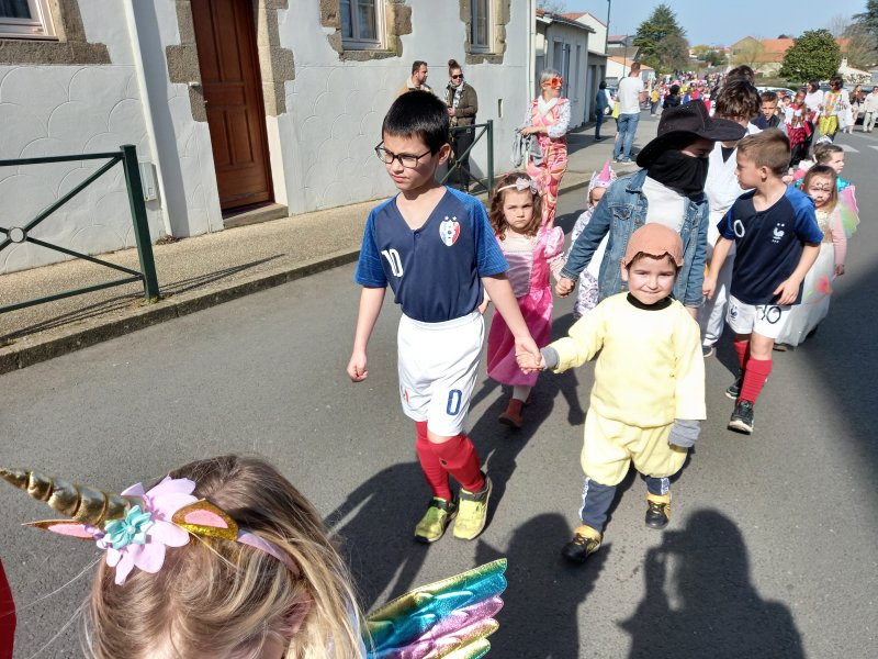 Des grands de la classe d’Evelyne sont venus leur donner la main et nous avons défilé dans les rues de La Bruffière, sous un beau soleil.