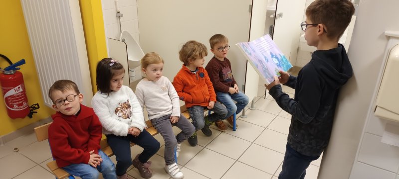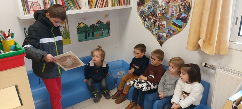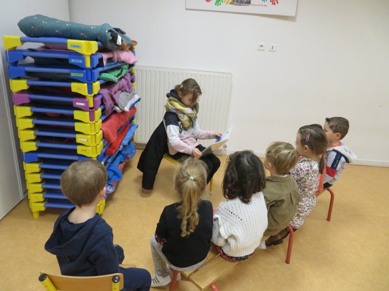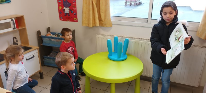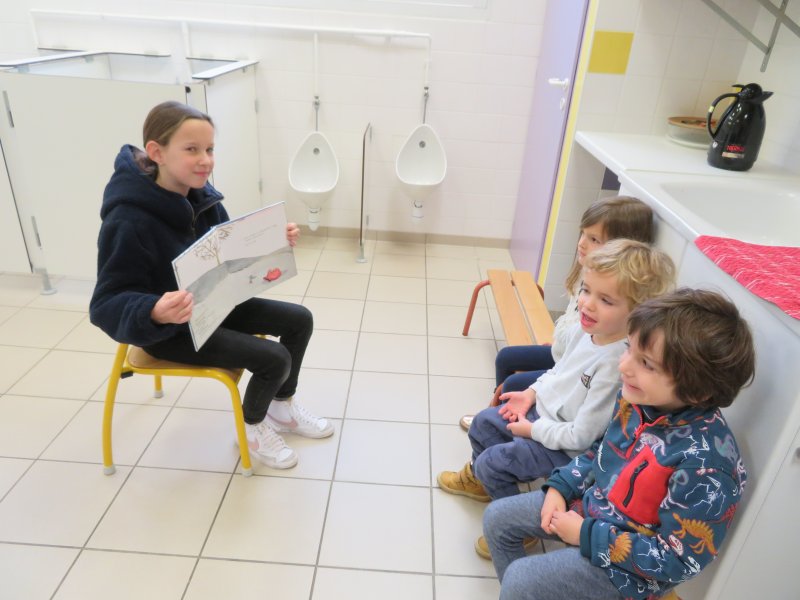 Ils préparent chacun leur lecture (voix, intonation…) et racontent l’album devant un petit groupe d’enfants, c’est un moment très apprécié par tout le monde !