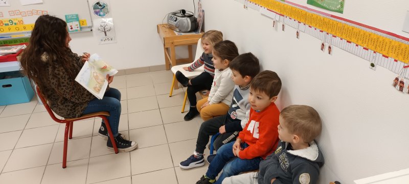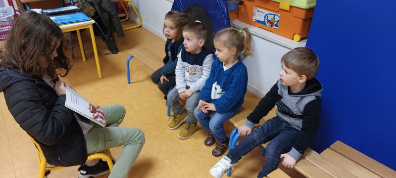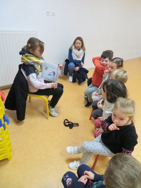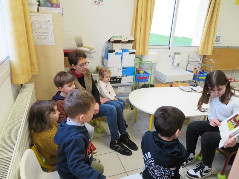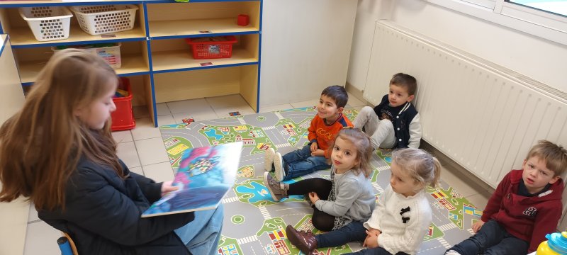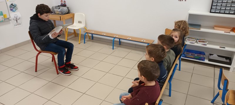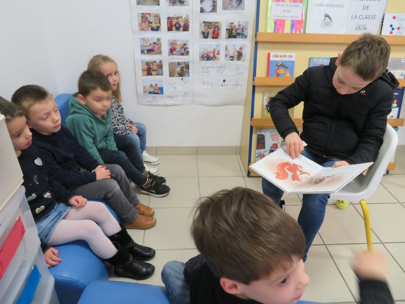 Depuis le mardi 17 janvier, les CM2 viennent lire des histoires aux classes de PS et PS/MS chaque mardi matin.