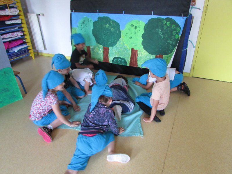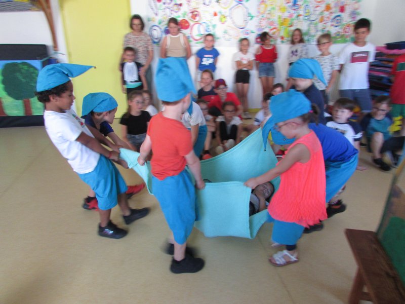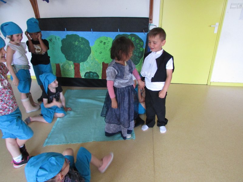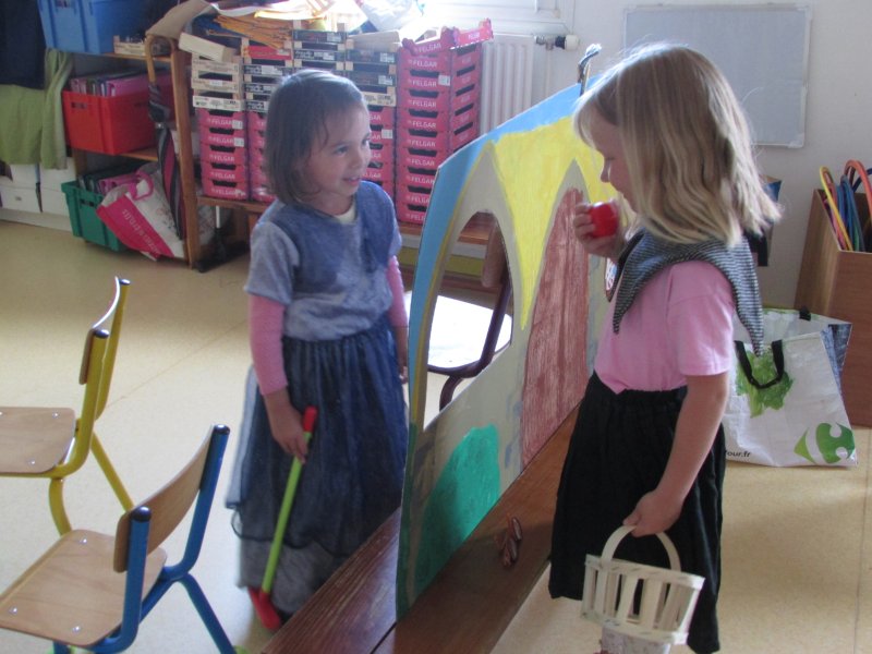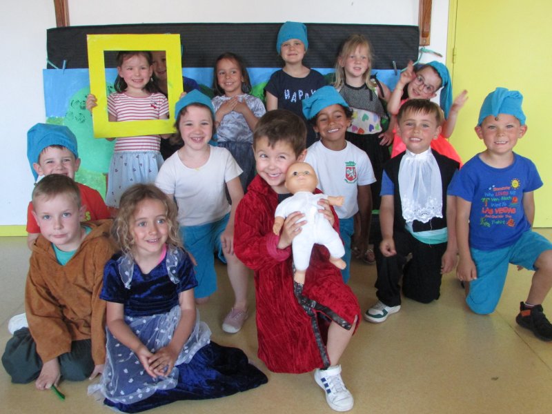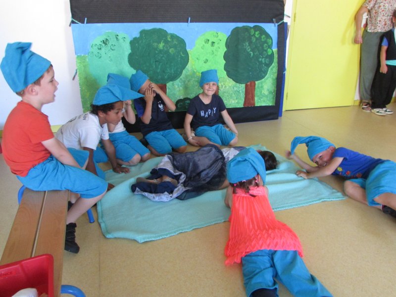 Dans le cadre du projet d’école “Tous en scène”, les élèves de MS/GS se sont jetés à l’eau et se sont mis en scène devant les enfants de la classe de CM1, résultat de tout un travail autour du conte de Blanche-Neige. Après la découverte du conte, il a fallu se partager les rôles (en 2 troupes), réaliser les décors, se mettre dans la peau de son personnage et apprendre son texte puis répéter devant les autres. Tous ont pris un grand plaisir à jouer leur personnage costumé et ont été ravis de présenter leur spectacle aux grands de la classe de CM1. Bravo à eux !