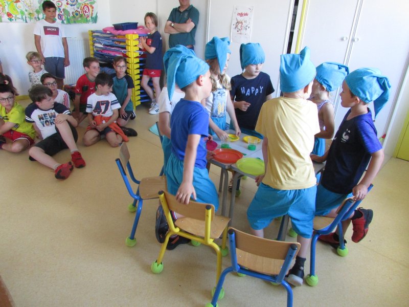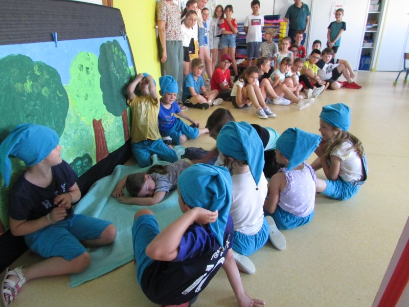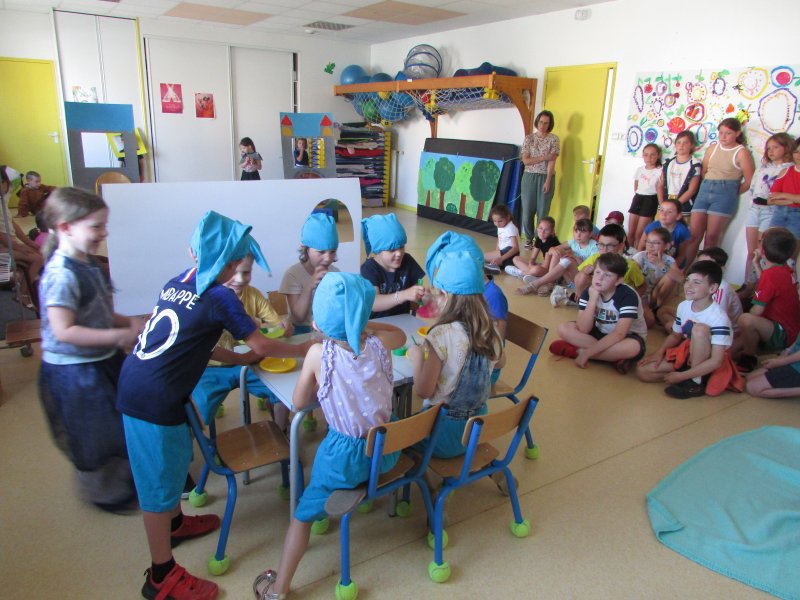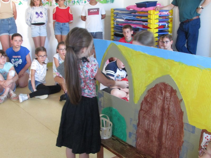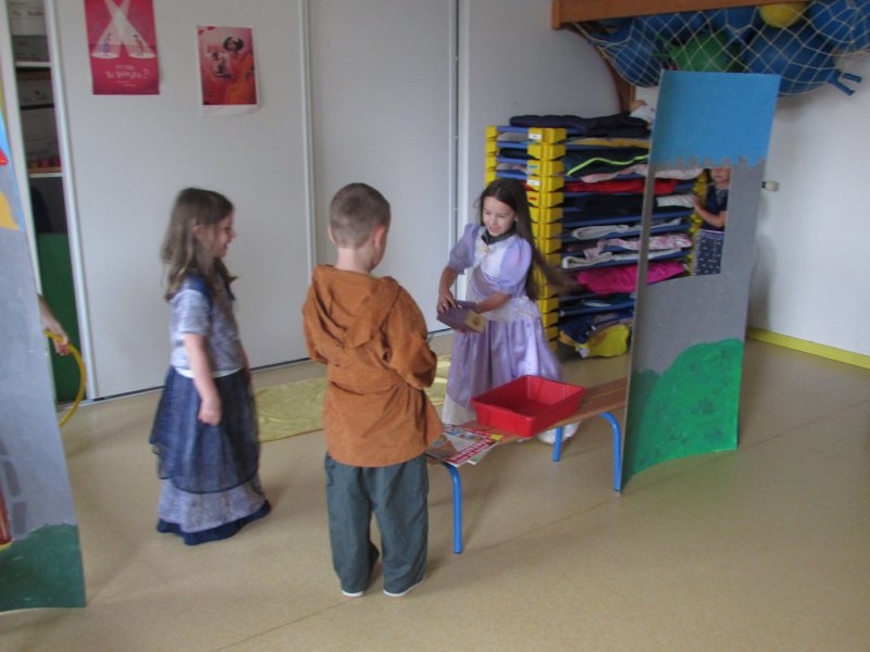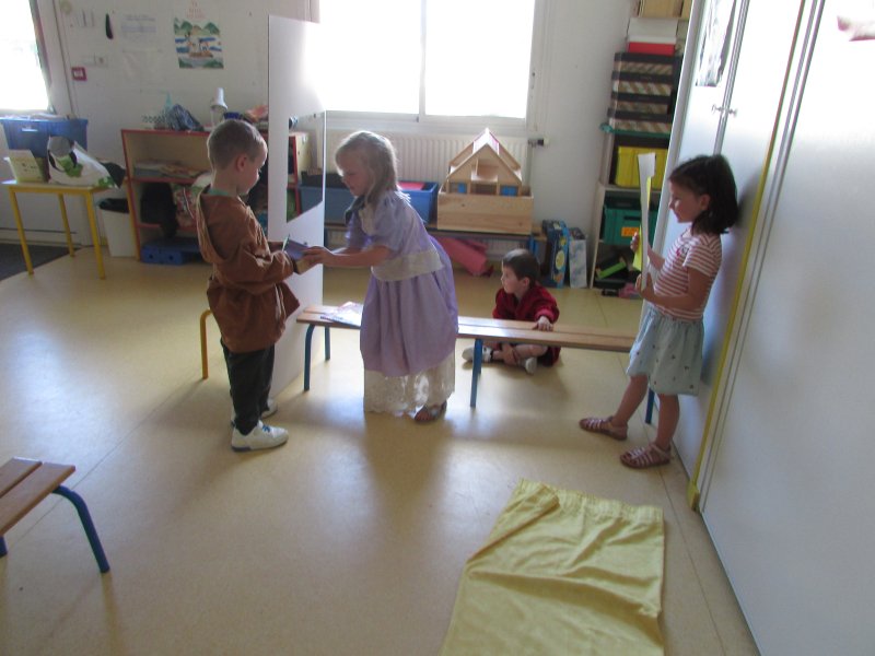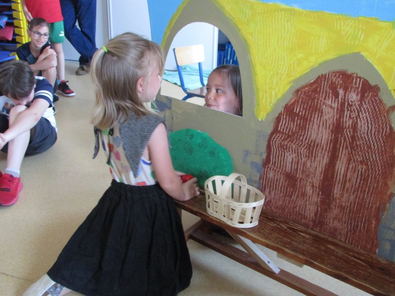 Dans le cadre du projet d’école “Tous en scène”, les élèves de MS/GS se sont jetés à l’eau et se sont mis en scène devant les enfants de la classe de CM1, résultat de tout un travail autour du conte de Blanche-Neige. Après la découverte du conte, il a fallu se partager les rôles (en 2 troupes), réaliser les décors, se mettre dans la peau de son personnage et apprendre son texte puis répéter devant les autres. Tous ont pris un grand plaisir à jouer leur personnage costumé et ont été ravis de présenter leur spectacle aux grands de la classe de CM1. Bravo à eux !