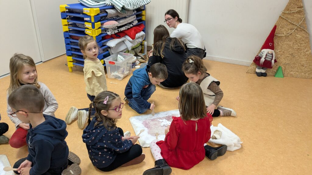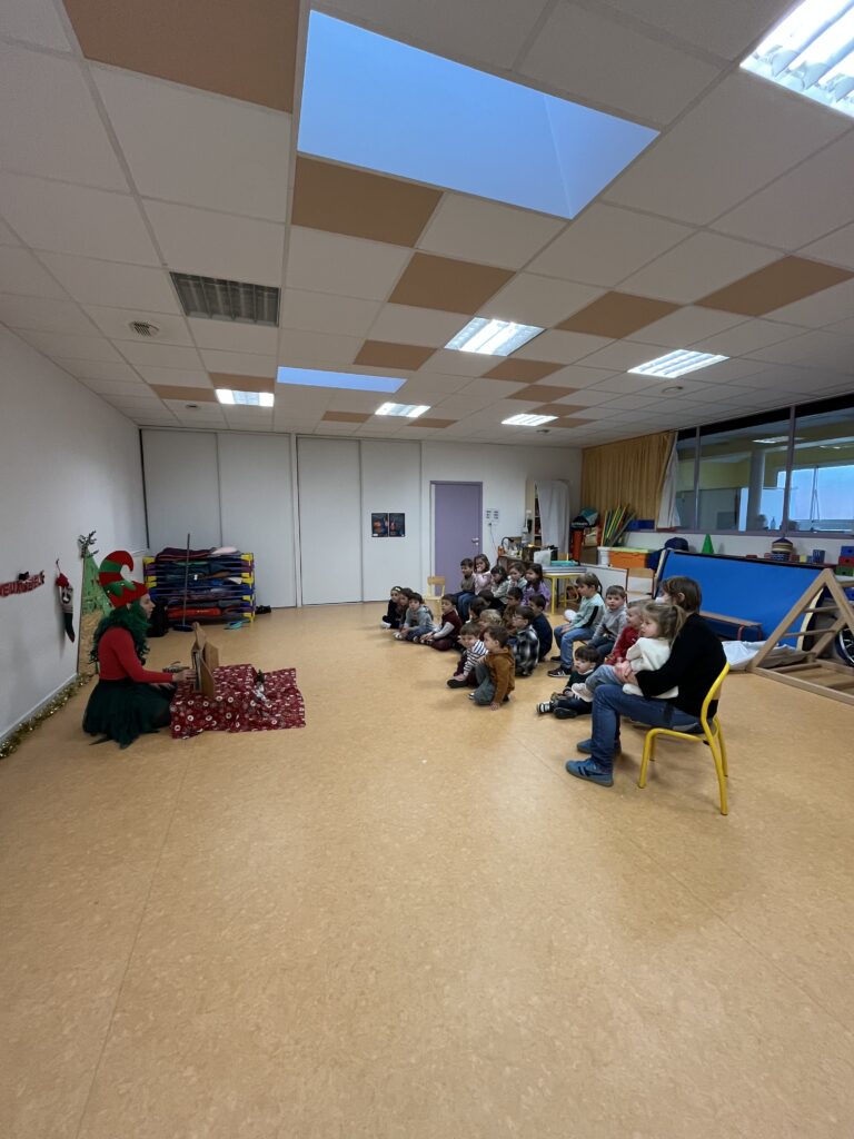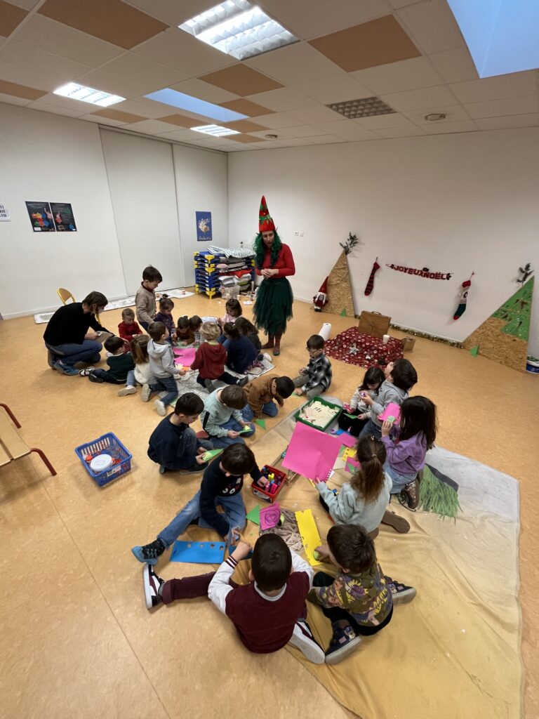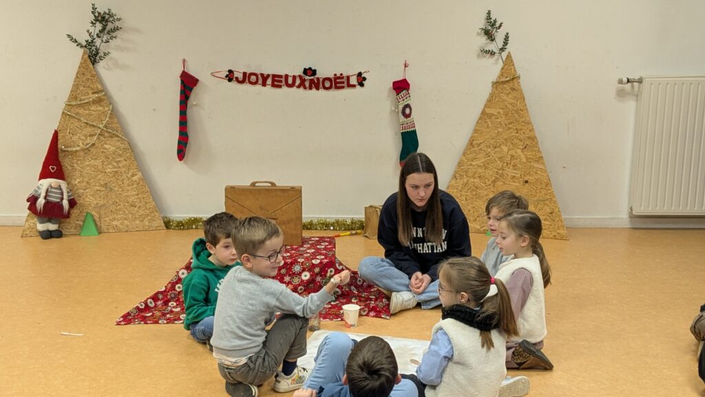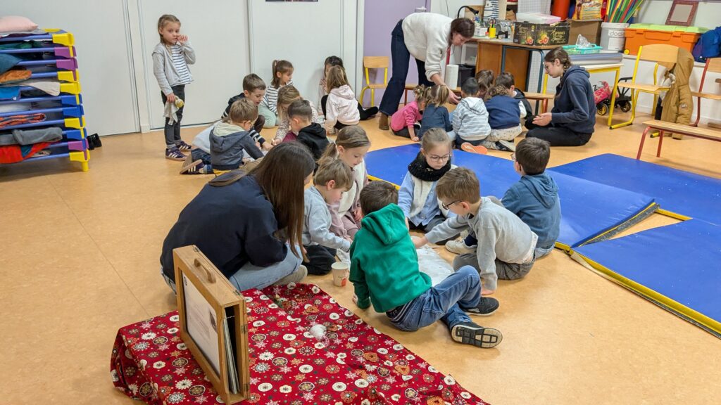 Nous avons entendu le grincement du kamishibai qui s’ouvrait pour nous partager une belle histoire entre un oiseau et un sapin : « La légende du sapin. »