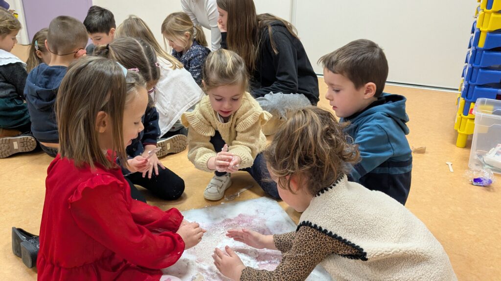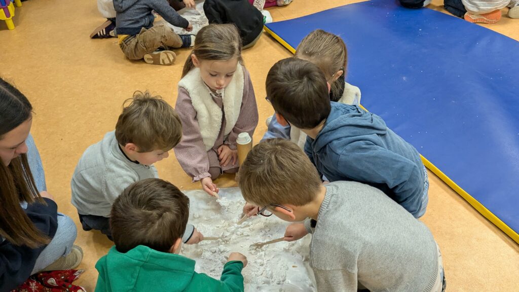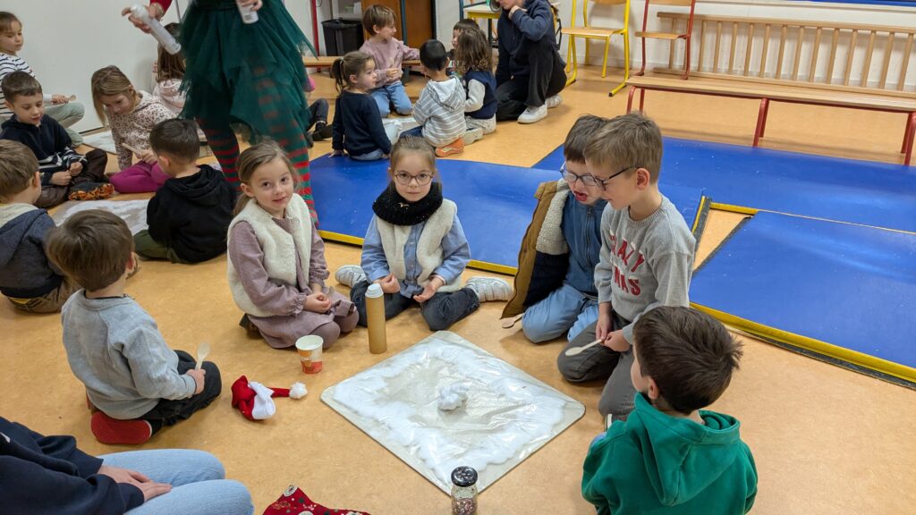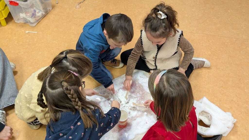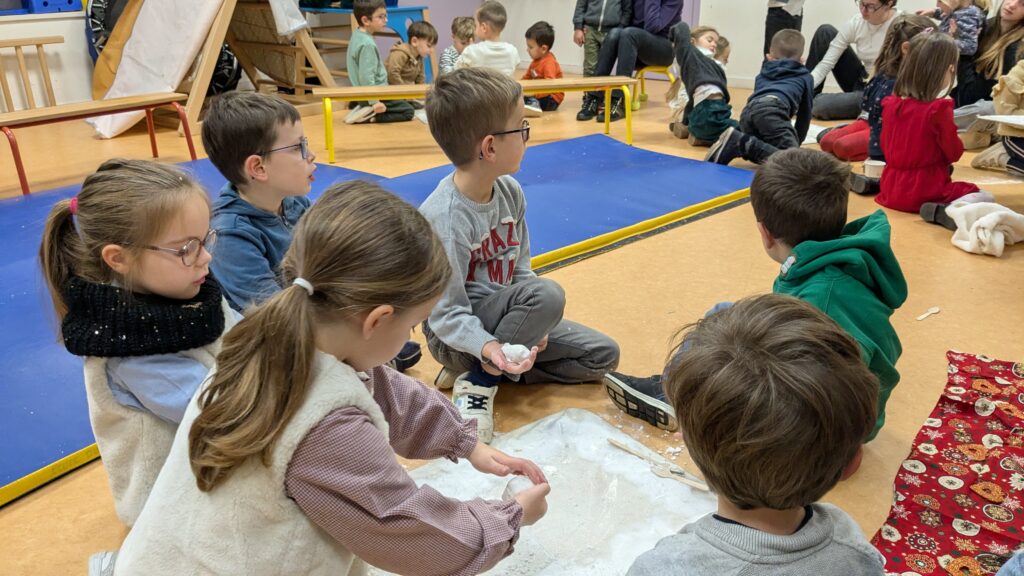 Nous avons ensuite fabriqué de la neige. Pour cela, la poussière de nuage fût un ingrédient essentiel !