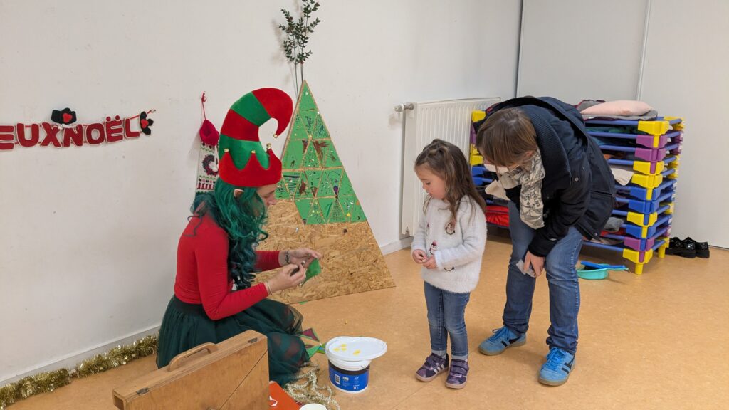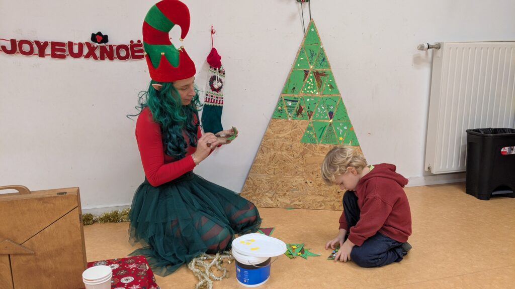 Nous avons aussi décoré chacun un petit triangle sapin, il est venu s’insérer dans notre grand sapin collectif.