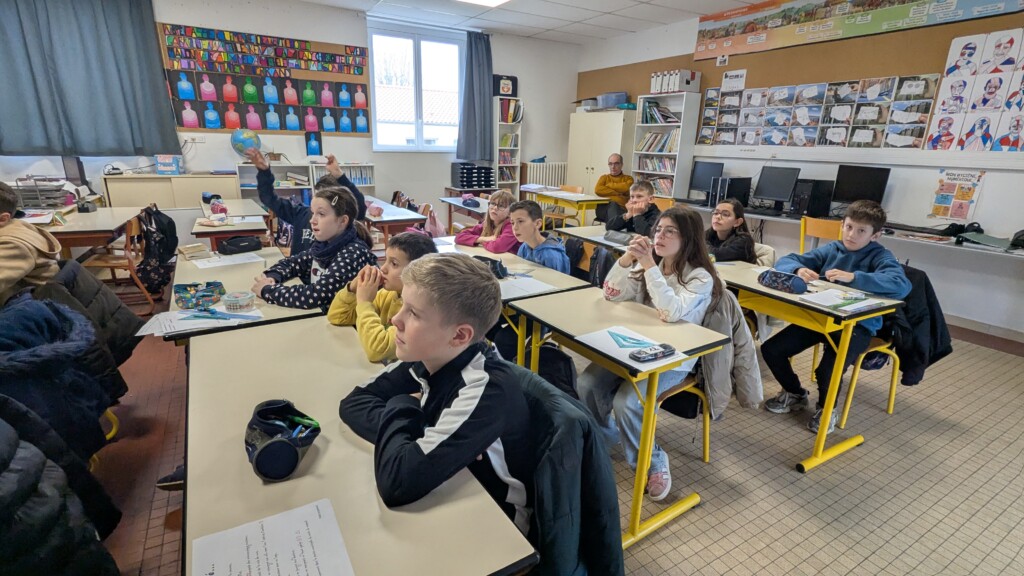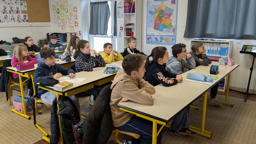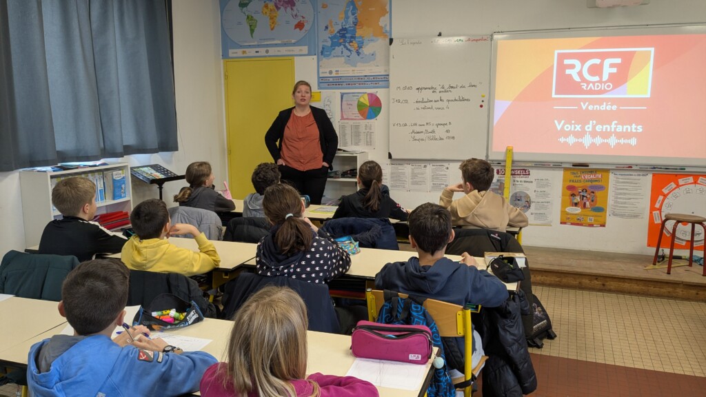 Le jeudi 12 février, les deux classes de CM2 ont accueilli Auberi Maitrot, directrice de RCF , pour lancer le projet “Voix d’enfants”. Cette année, nos élèves deviennent de véritables chroniqueurs radio.